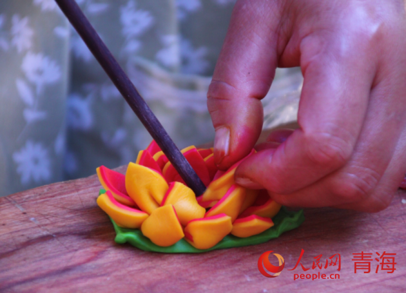 制作者在給面食雕花。實(shí)習(xí)生 謝尹廷攝