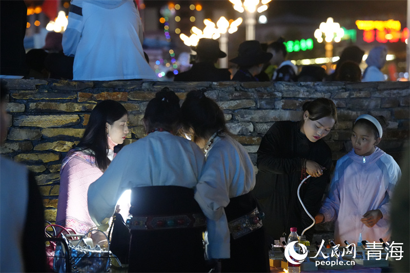 夜幕降臨,華燈初上,走進(jìn)青海省玉樹藏族自治州玉樹市康巴風(fēng)情街,處處升騰著“煙火氣”,在玉樹州特色產(chǎn)品促銷大集上,攤主們忙得熱火朝天,到處呈現(xiàn)出一片繁榮的景象。