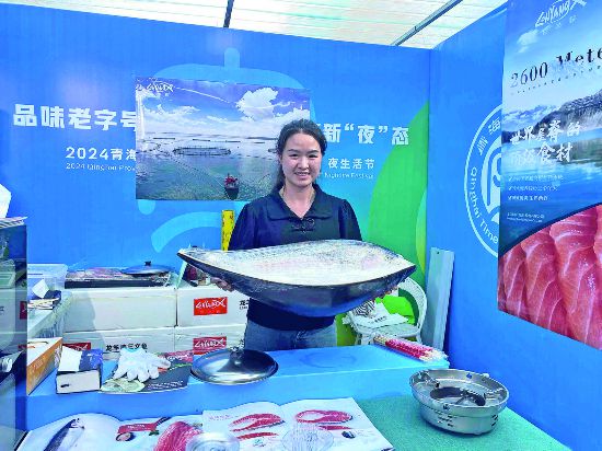 工作人員推薦三文魚產(chǎn)品。 青海日報記者 董潔 攝