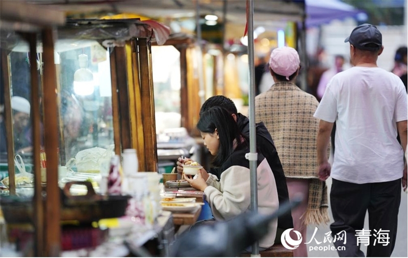 人群熙攘、煙火升騰。傍晚時(shí)分,青海省西寧市城東區(qū)下南關(guān)街夜市如同一幅流動(dòng)的畫卷,緩緩展開。作為西寧美食集聚區(qū)的代表,擁有百年風(fēng)味的下南關(guān)街步入了一天中最為喧鬧的時(shí)段。
