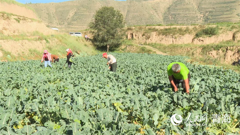 樂都區(qū)共和鄉(xiāng)大莊村西蘭花示范種植點(diǎn)一片繁忙。人民網(wǎng)記者 張莉萍攝