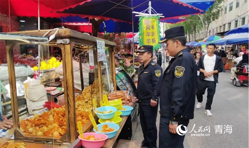 工作人員檢查下南關(guān)市場明碼標價、三防措施、食品安全等。人民網(wǎng)記者 張莉萍攝