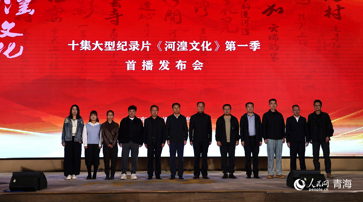 《河湟文化》(第一季)主創(chuàng)人員與參會(huì)嘉賓合影。人民網(wǎng)記者 楊啟紅攝