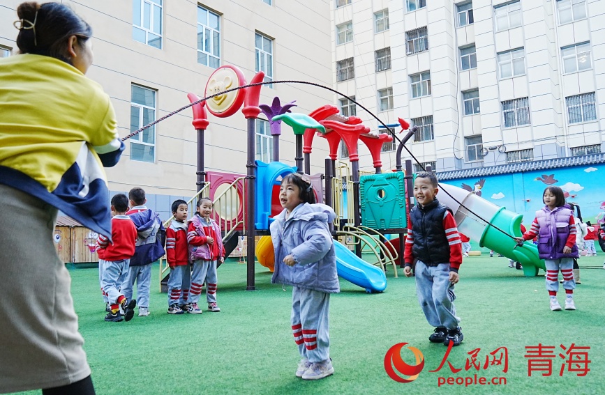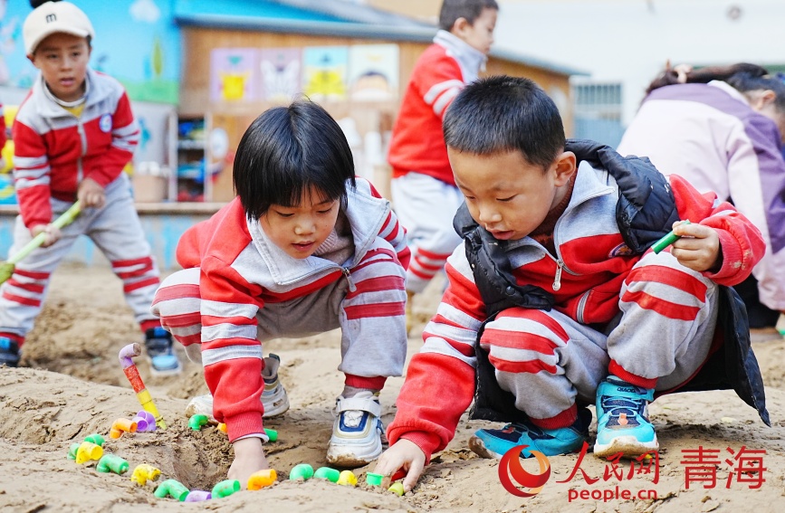 上午10時(shí),幼兒園童聲朗朗。青海省海東市循化撒拉族自治縣第一幼兒園的孩子們正在戶(hù)外進(jìn)行“安吉游戲”。