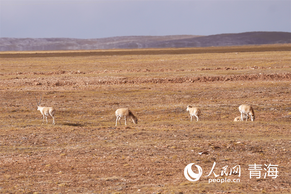 可可西里,藏羚羊在覓食。人民網記者 甘海瓊攝