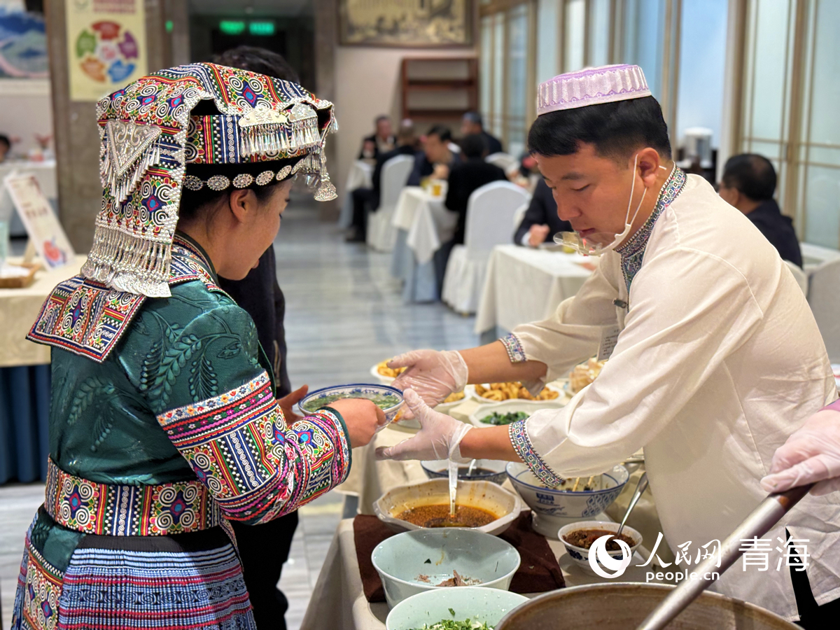 “我們熬的牦牛骨湯,加的牦牛牛腩肉,還有循化的線辣子和花椒制成的調(diào)料,僅拉面面食就有10來種。還新增了撒拉家宴里的各種餡兒的盒子等?!瘪v地拉面點位負責人王忠介紹,兩處點位每天提供三餐,日均提供800碗左右的拉面,代表委員們好評不斷。