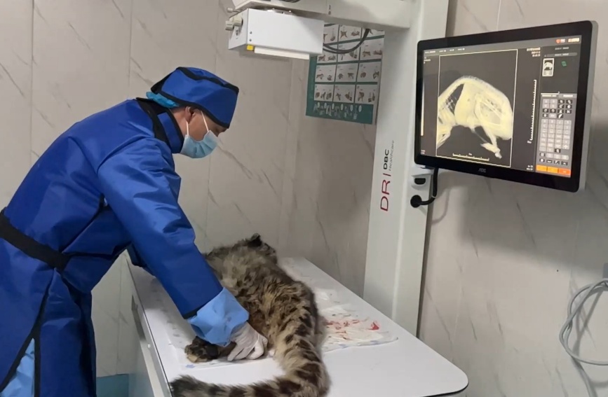 給“凌小蟄”拍片子。青海野生動(dòng)物救護(hù)繁育中心供圖