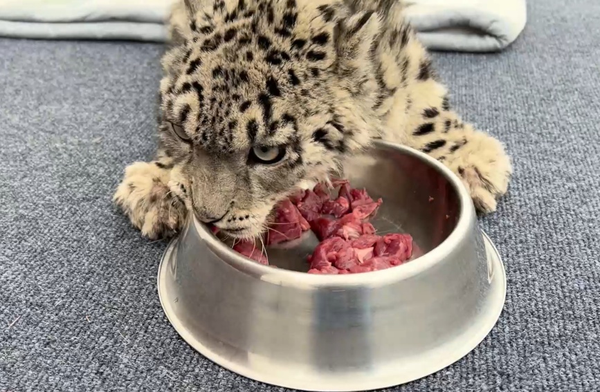 在這個(gè)過程中,工作人員還將救護(hù)過程發(fā)到了網(wǎng)上,受到網(wǎng)友廣泛關(guān)注。看到起初孱弱的“凌小蟄”從“蠕動(dòng)”到靠著墻緩慢爬行;從需要工作人員喂食到抱著盆“大口炫肉”……網(wǎng)友們也“云參與”到雪豹救護(hù)中來,時(shí)刻關(guān)心關(guān)注著救護(hù)情況。