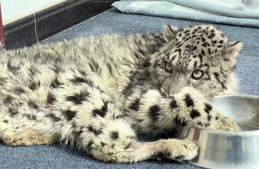 2025年3月4日,青海省玉樹藏族自治州治多縣索加鄉(xiāng)的生態(tài)管護(hù)員發(fā)現(xiàn)一只奄奄一息的雪豹幼崽。在臨時(shí)救援場所經(jīng)過簡單的治療后,三江源國家公園治多管理處輾轉(zhuǎn)1500公里,將雪豹幼崽連夜送往青海野生動(dòng)物救護(hù)繁育中心(西寧植物園)。