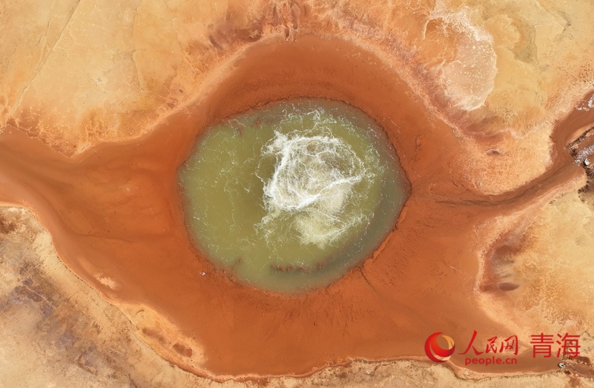 位于青海省海西蒙古族藏族自治州茫崖市花土溝鎮(zhèn)的艾肯泉,是一處神秘而壯麗的自然奇觀。直徑10多米的泉眼終年翻涌如沸水,因富含硫黃等礦物質(zhì),長(zhǎng)期沉淀形成紅褐色、金黃色等斑斕的環(huán)帶狀地貌,從空中俯瞰宛如一只鑲嵌在大地的“瞳孔”,被稱作“大地之眼”?!鞍稀痹诿烧Z里意為“可怕”,因含硫量過高,泉眼周圍飛鳥野獸不敢靠近,泉水流經(jīng)之處寸草不生,也被稱為“惡魔之眼”。