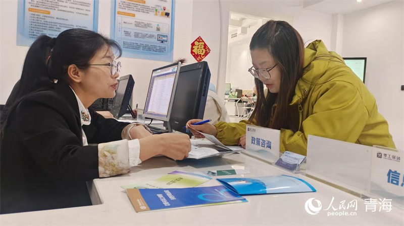 零工驛站內(nèi),工作人員正在為求職者進(jìn)行政策咨詢(xún)。人民網(wǎng)記者 張莉萍攝