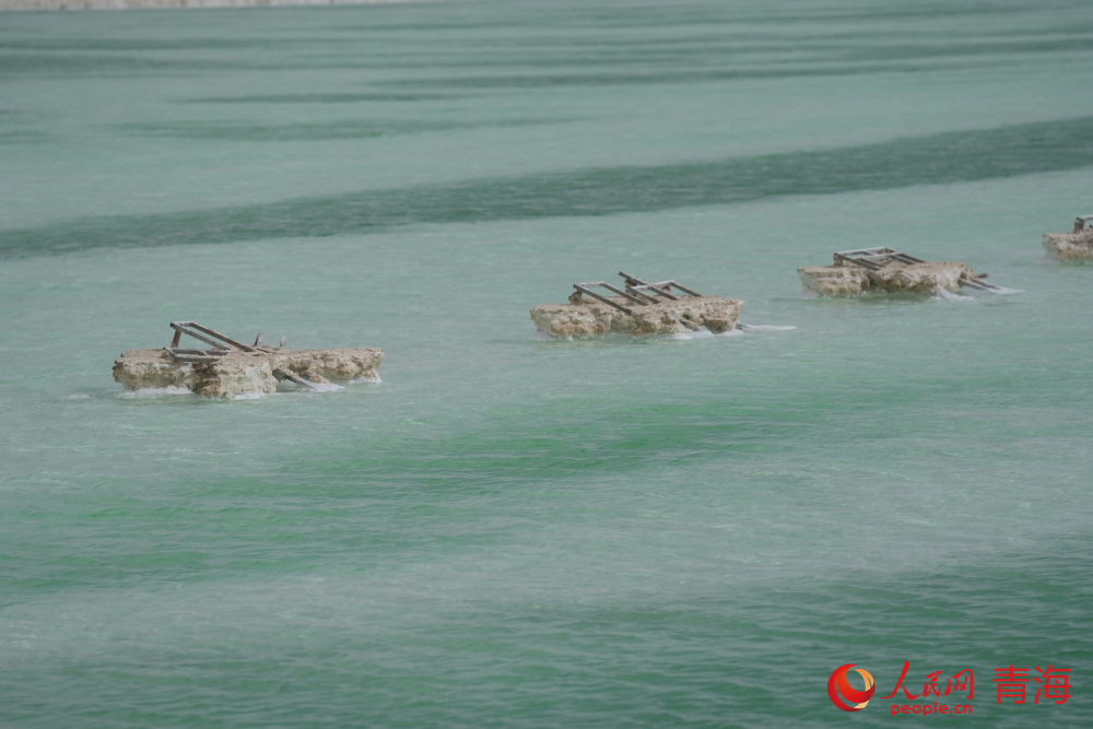 茫崖翡翠湖純凈的湖水。人民網(wǎng)記者 甘海瓊攝