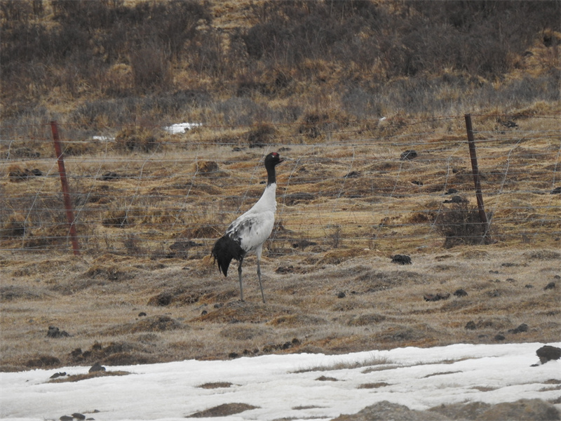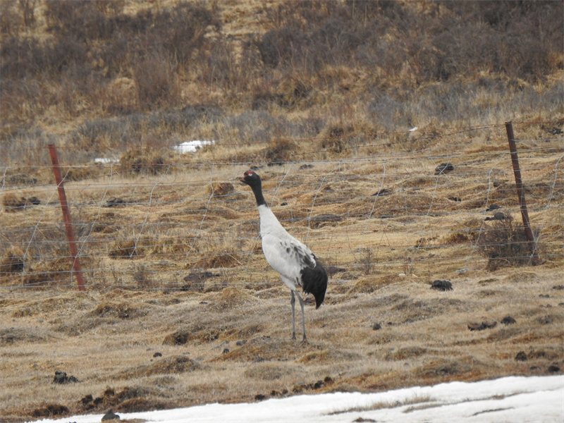 人民網(wǎng)西寧4月23日電 (馬可欣)2025年4月22日,大通北川河源區(qū)國家級自然保護區(qū)管理局生態(tài)管護員在保護區(qū)巴彥地區(qū)巡護途中拍攝到國家一級保護野生動物——黑頸鶴。黑頸鶴是中國特有鳥種,種群數(shù)量十分稀少,被稱為“鳥類大熊貓”。黑頸鶴也是世界上唯一生長、繁殖在高原的鶴類。