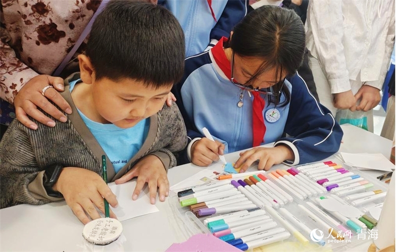 西寧市博文學(xué)校的作品展示。人民網(wǎng)記者 張莉萍攝