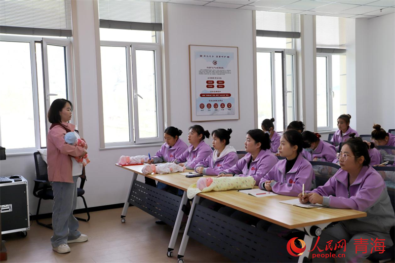 在大通縣護(hù)工產(chǎn)業(yè)發(fā)展基地,保育師正在授課。人民網(wǎng) 馬可欣攝