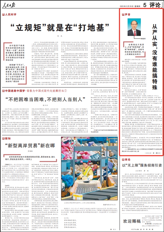 在青海這片高原上,只有“特殊貢獻(xiàn)”,沒有“特殊待遇”。后者與黨的宗旨背道而馳,與人民期盼反向而行