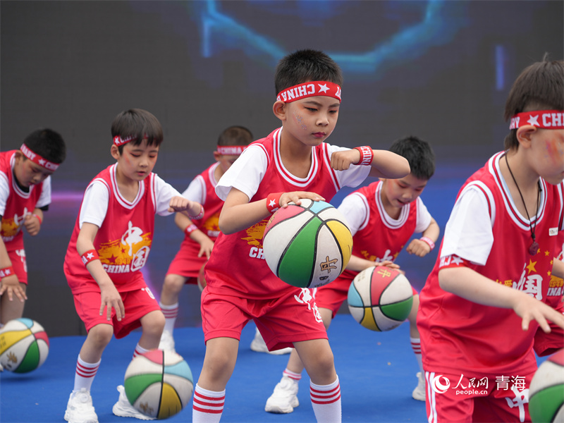 幼兒園小朋友帶來的精彩表演——“花樣籃球”。人民網(wǎng)記者 張莉萍攝