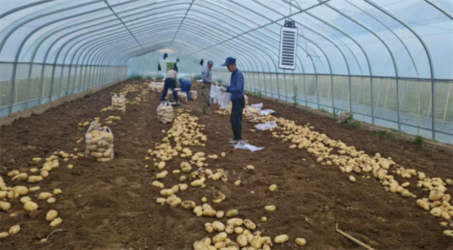而這僅僅是開始,拱棚不只是種洋芋的“容器”,更是鄉(xiāng)村振興的“孵化器”。“洋芋采收后,利用棚內(nèi)溫濕度,還能接著種兩茬蔬菜,畝均增收2萬元?!崩钌平鹬钢飪?nèi)說道。