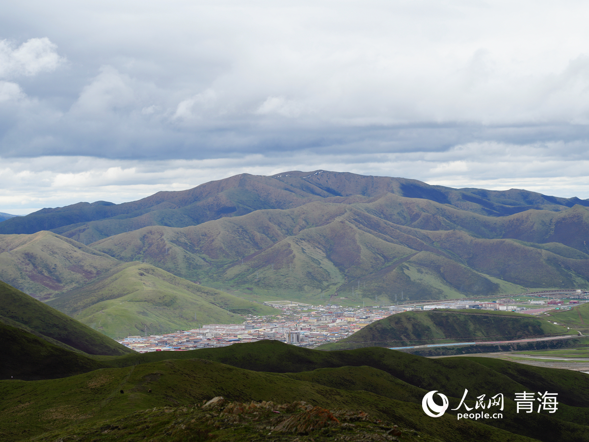 果洛新一代天氣雷達項目所在山頂可俯瞰達日縣城。人民網(wǎng)記者 楊啟紅攝