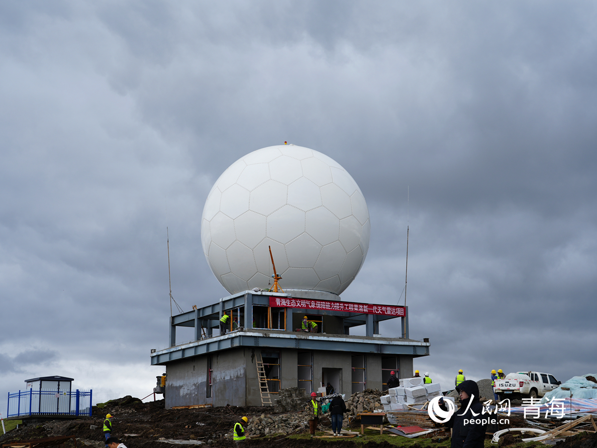 果洛新一代天氣雷達項目施工現(xiàn)場。人民網(wǎng)記者 楊啟紅攝