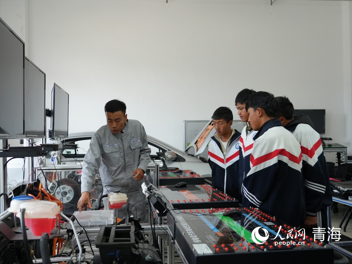果洛州職業(yè)技術(shù)學(xué)校汽車運用與維修專業(yè)學(xué)生學(xué)習(xí)。人民網(wǎng)記者 楊啟紅攝