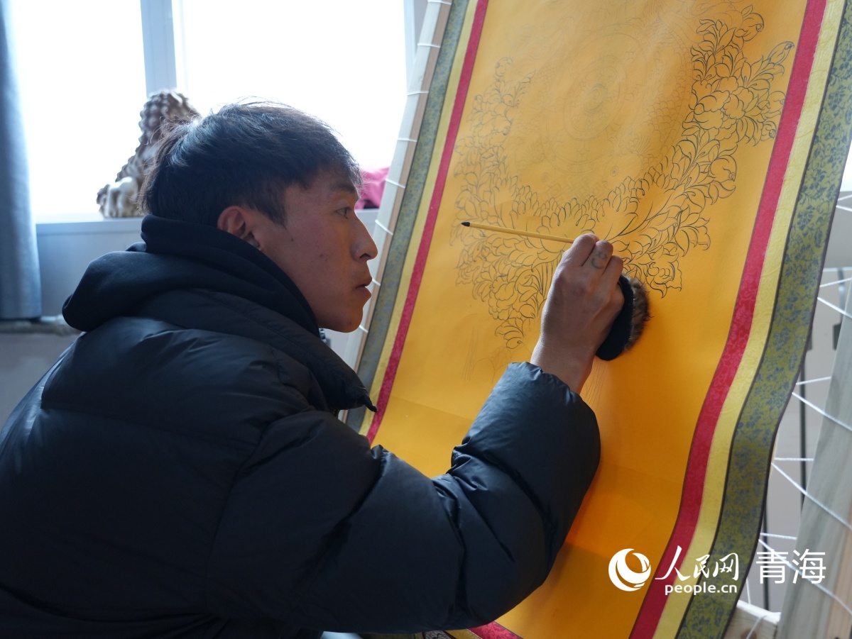 唐卡工藝美術(shù)實訓(xùn)。人民網(wǎng)記者 楊啟紅攝