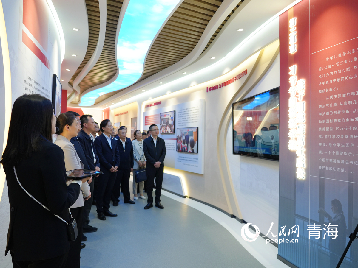 與會(huì)嘉賓參觀教育援青展館。人民網(wǎng)記者 楊啟紅攝