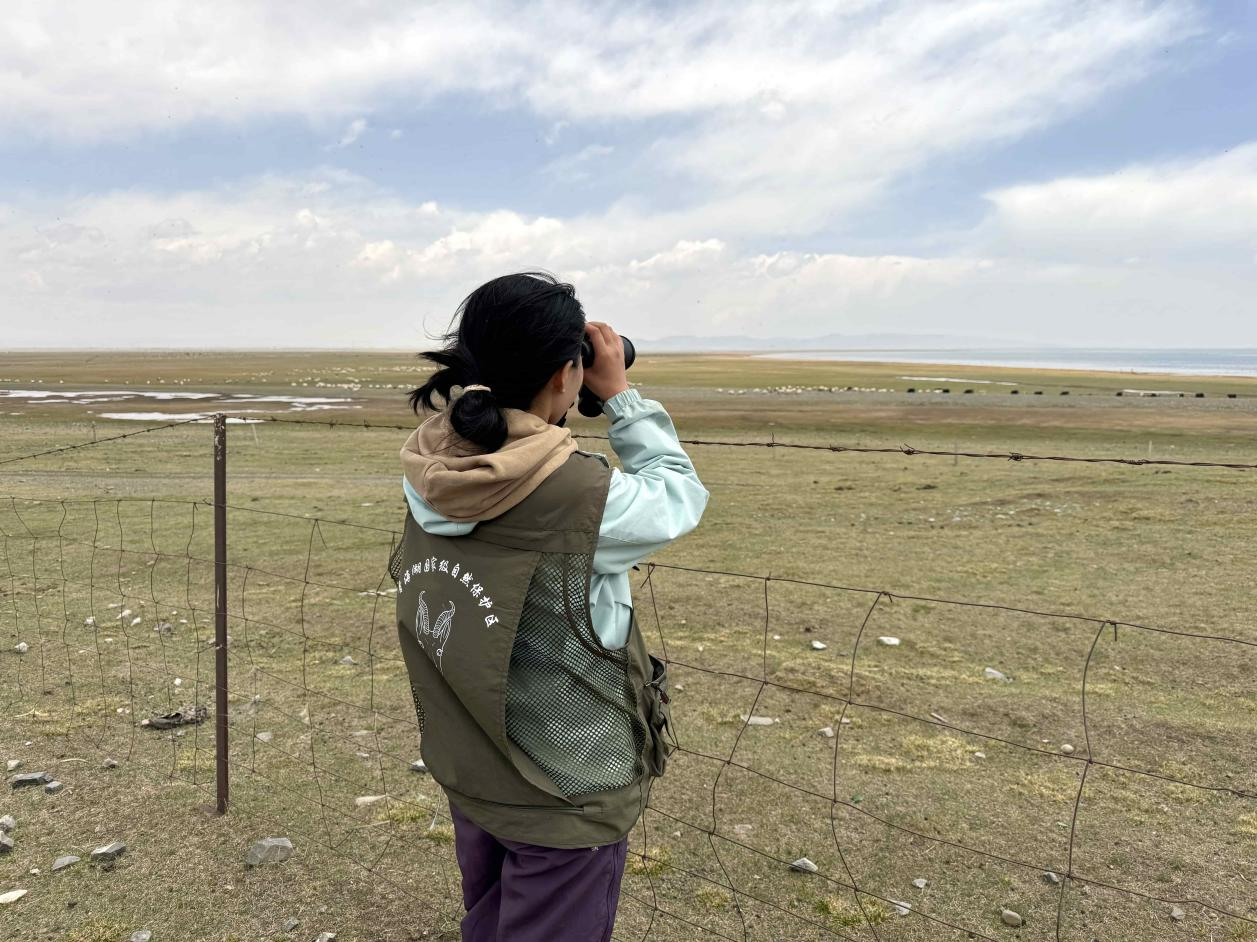 7月的青海湖,早上涼意陣陣。多杰措毛背上裝有相機(jī)和望遠(yuǎn)鏡的背包,開始一天的巡護(hù)工作。她沿著青海湖邊的小路前行。湖面上,微風(fēng)拂過,波光粼粼,幾只早起的水鳥在水面上翩翩起舞。多杰措毛停下腳步,舉起望遠(yuǎn)鏡,仔細(xì)觀察著這些靈動的生靈,記錄下它們的活動情況。作為一名青海湖景區(qū)保護(hù)利用管理局共和管理分局的生態(tài)管護(hù)員,監(jiān)測野生動物、保護(hù)自然景觀、巡查和監(jiān)管湖區(qū)的環(huán)境狀況是她的日常。