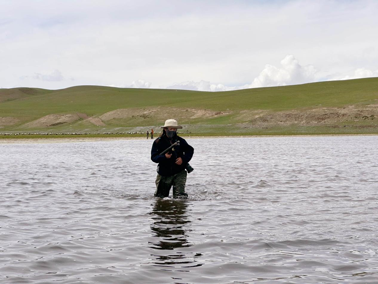 多杰措毛在野外進(jìn)行監(jiān)測工作。受訪者供圖