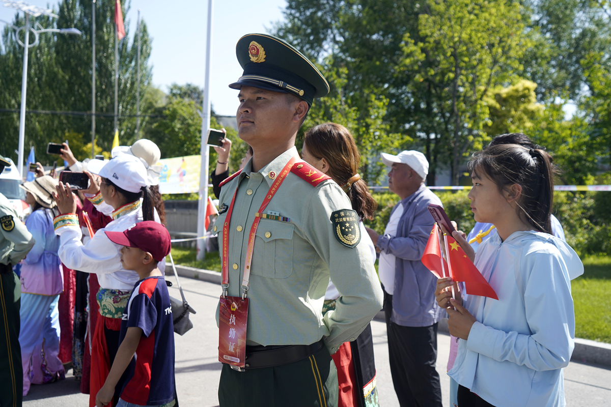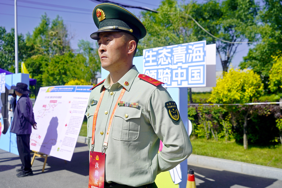 第24屆環(huán)大美青海國際公路自行車賽正如火如荼進行。賽道沿線,武警青海總隊機動某支隊官兵頂烈日、戰(zhàn)高溫,以嚴整的警容、飽滿的熱情和過硬的作風,筑起一道堅實可靠的安全屏障,確保賽事全程安全順暢。