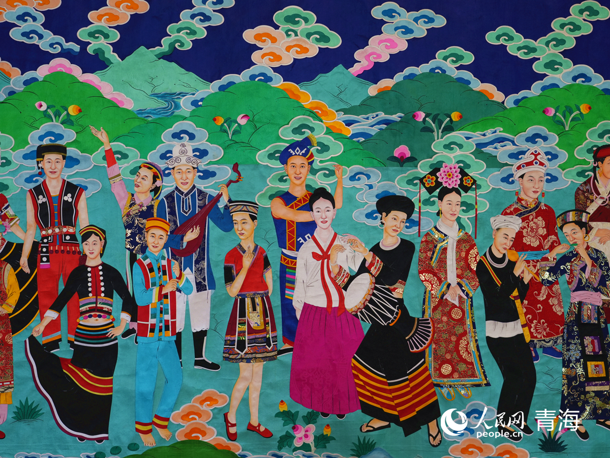 熱貢藝術(shù)之堆繡作品。人民網(wǎng)記者 楊啟紅攝