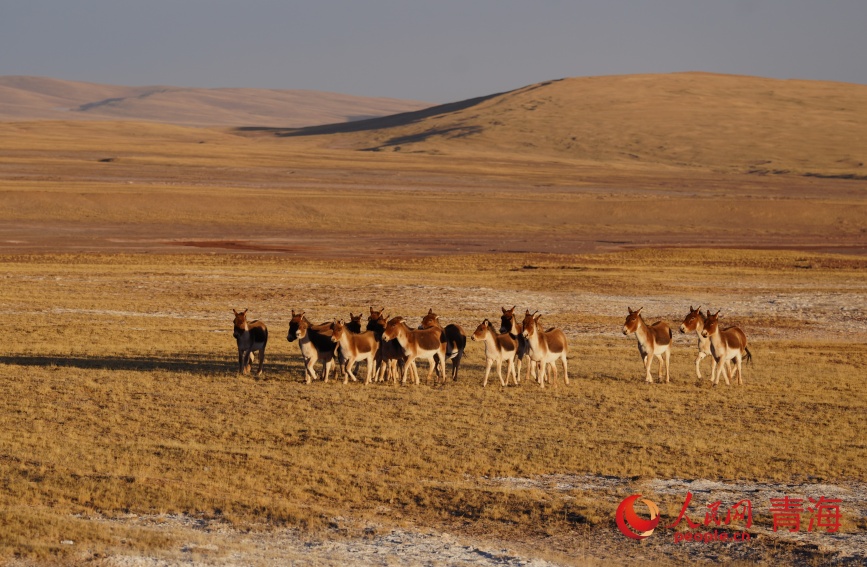 藏野驢在夕陽下奔跑。人民網(wǎng)記者 甘海瓊攝