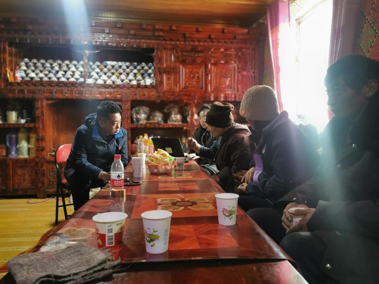 錢快乾(左一)及同事在牧民家了解情況。受訪單位供圖