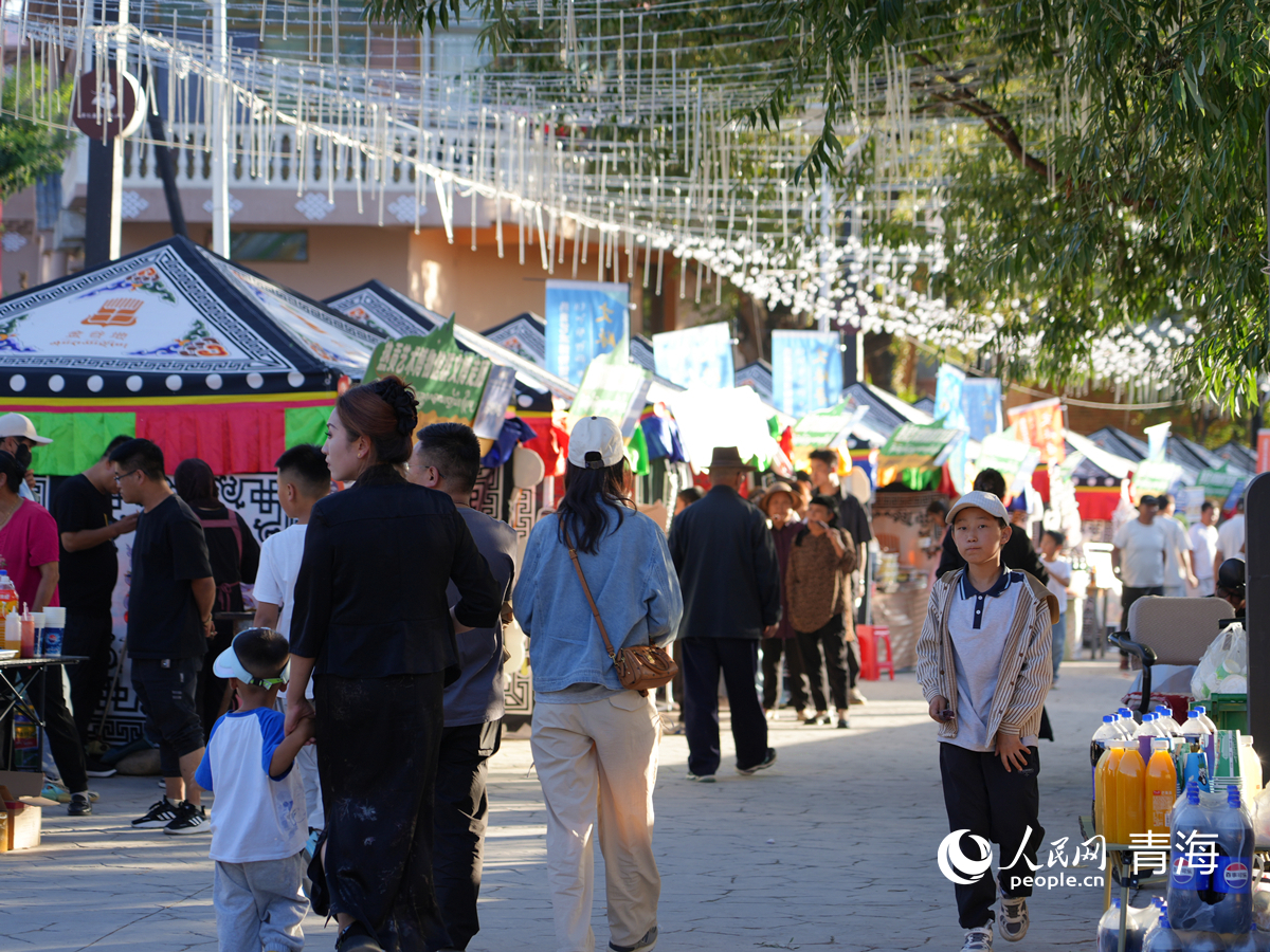 那么,市集又是什么樣的呢?游客們?cè)谖膭?chuàng)攤位前好奇追問(wèn),小孩們?cè)诿朗硵偽磺按瓜延危?dāng)?shù)馗髯迦罕娫趶V場(chǎng)上共跳鍋莊……幾句交流之間,互遞微笑之際,熱貢藝術(shù)、美食文化、地方特色傳播開(kāi)來(lái),同仁形象、同仁溫度涌現(xiàn)出來(lái),讀懂熱貢、愛(ài)上熱貢、駐足熱貢正始于這夏日玩創(chuàng)市集。