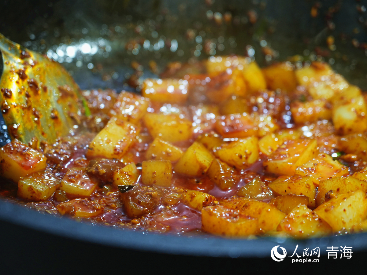 夏日玩創(chuàng)市集上的特色美食——炒涼粉。人民網(wǎng)記者 楊啟紅攝