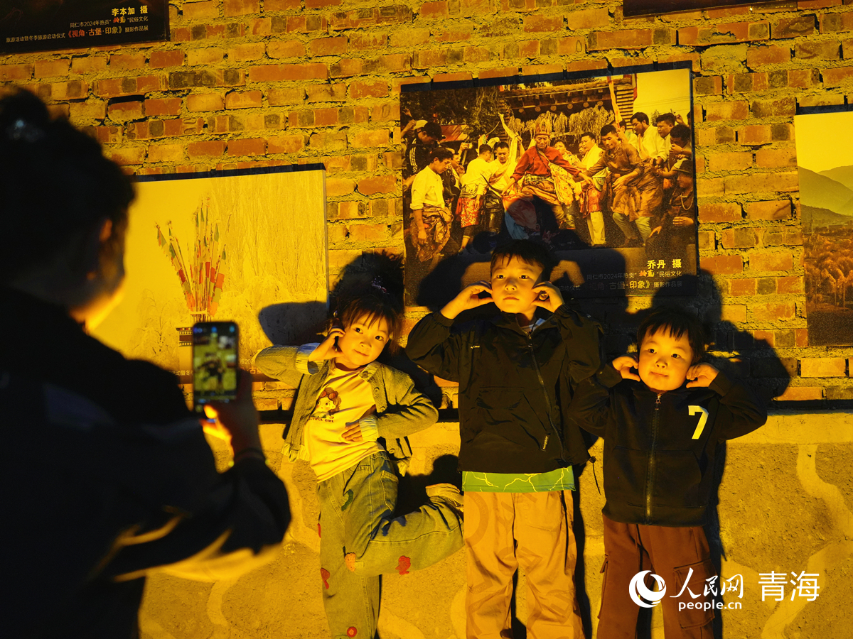 在照片墻前合影。人民網(wǎng)記者 楊啟紅攝