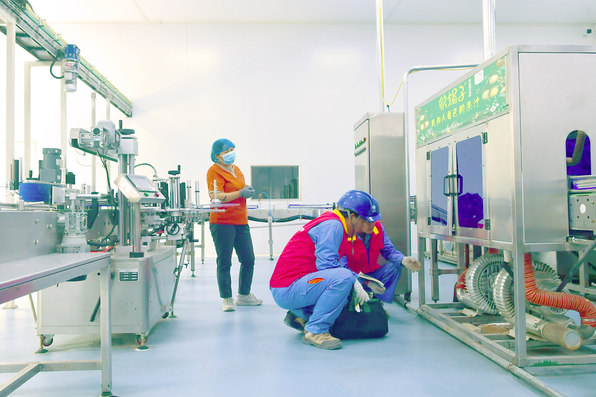 國網(wǎng)海東供電公司馬場垣供電所網(wǎng)格員李金忠、趙立強在橋頭村民和縣沿雅梨源文化有限公司軟兒梨深加工車間進行設備用電安全隱患排查。李永鵬攝