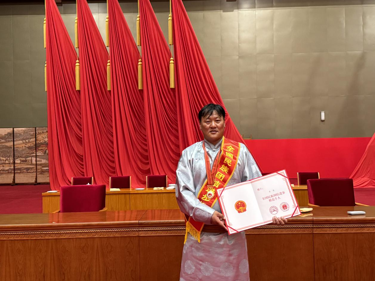 長愛被授予“全國民族團(tuán)結(jié)進(jìn)步模范個(gè)人”榮譽(yù)稱號(hào)。河南縣委宣傳部供圖