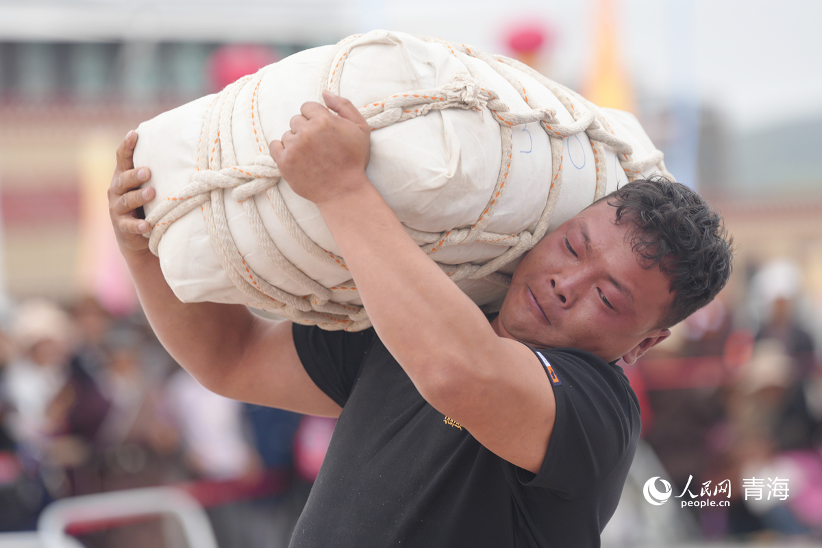 舉沙袋比賽。人民網(wǎng)記者 楊啟紅攝