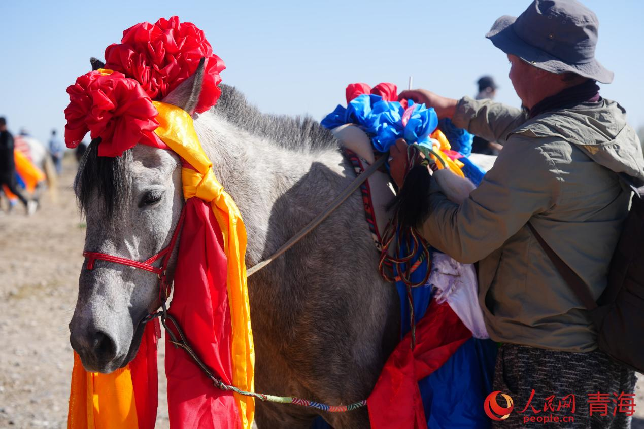 給馬佩戴纓子和彩綢帶。人民網 況玉攝