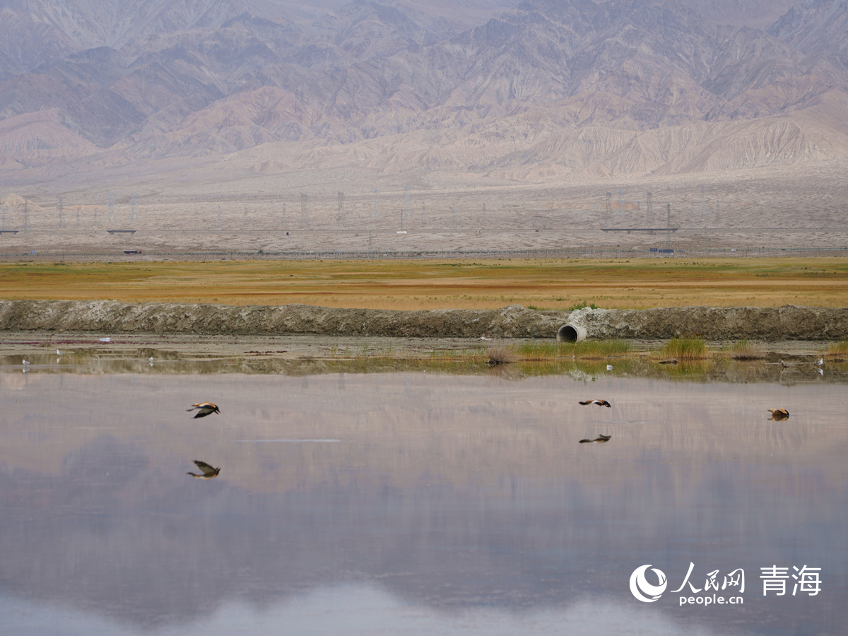 濕地周邊,水鳥棲息。人民網(wǎng)記者 楊啟紅攝