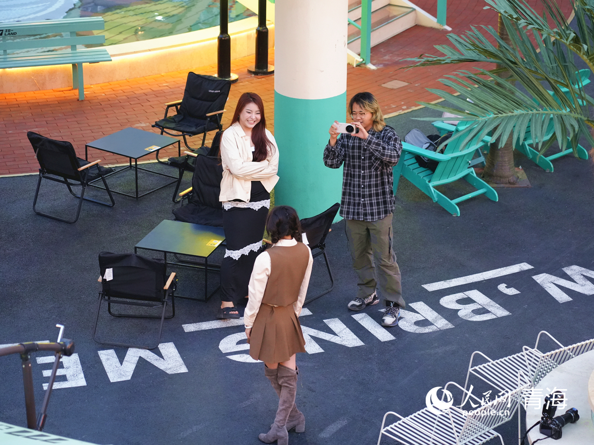 年輕人在街區(qū)拍照。人民網(wǎng)記者 楊啟紅攝