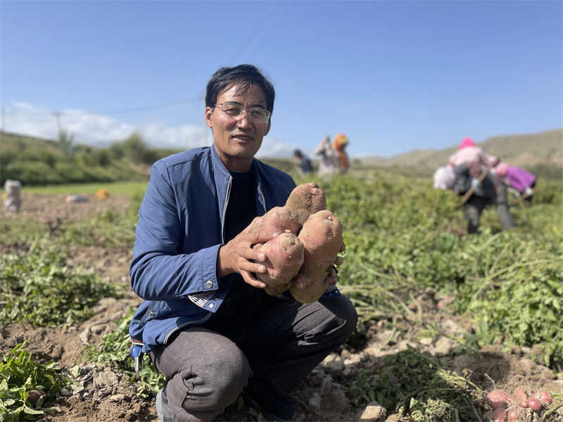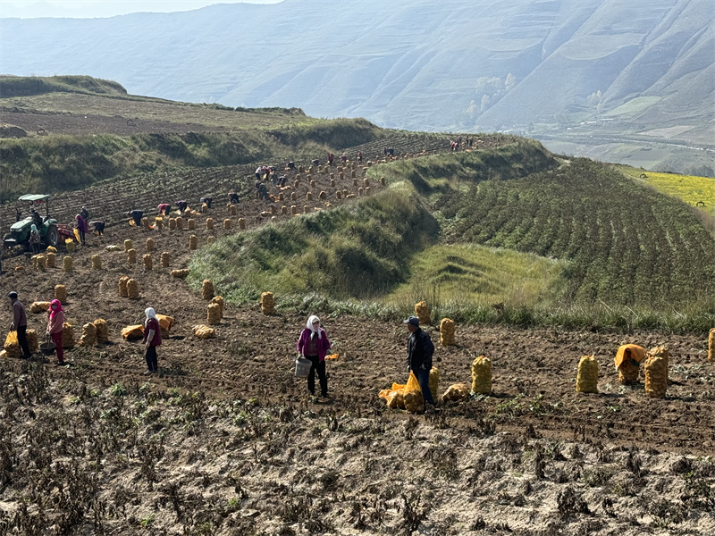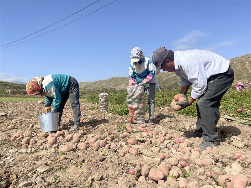 村民正在采收馬鈴薯。王桂萍攝
