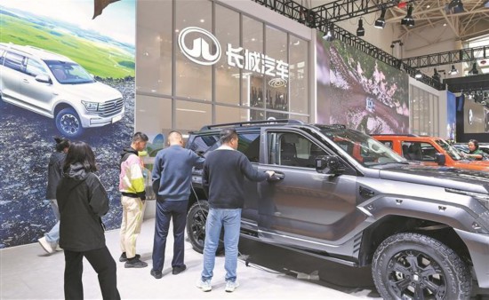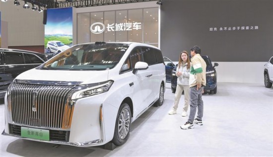市民在國產(chǎn)新能源汽車展臺進行咨詢。