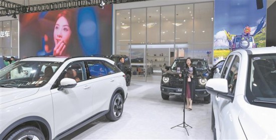 展區(qū)主播對著鏡頭,熱情介紹自家車型的亮點。