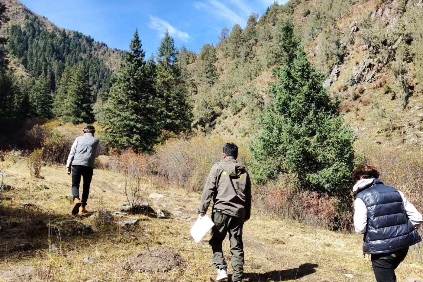 東哇俄本和同伴在啞巴溝巡護(hù)。人民網(wǎng)記者 甘海瓊攝