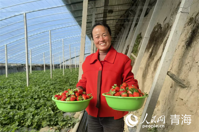 湟源縣城關(guān)鎮(zhèn)涌興村草莓“搶鮮”上市。人民網(wǎng) 馬可欣攝