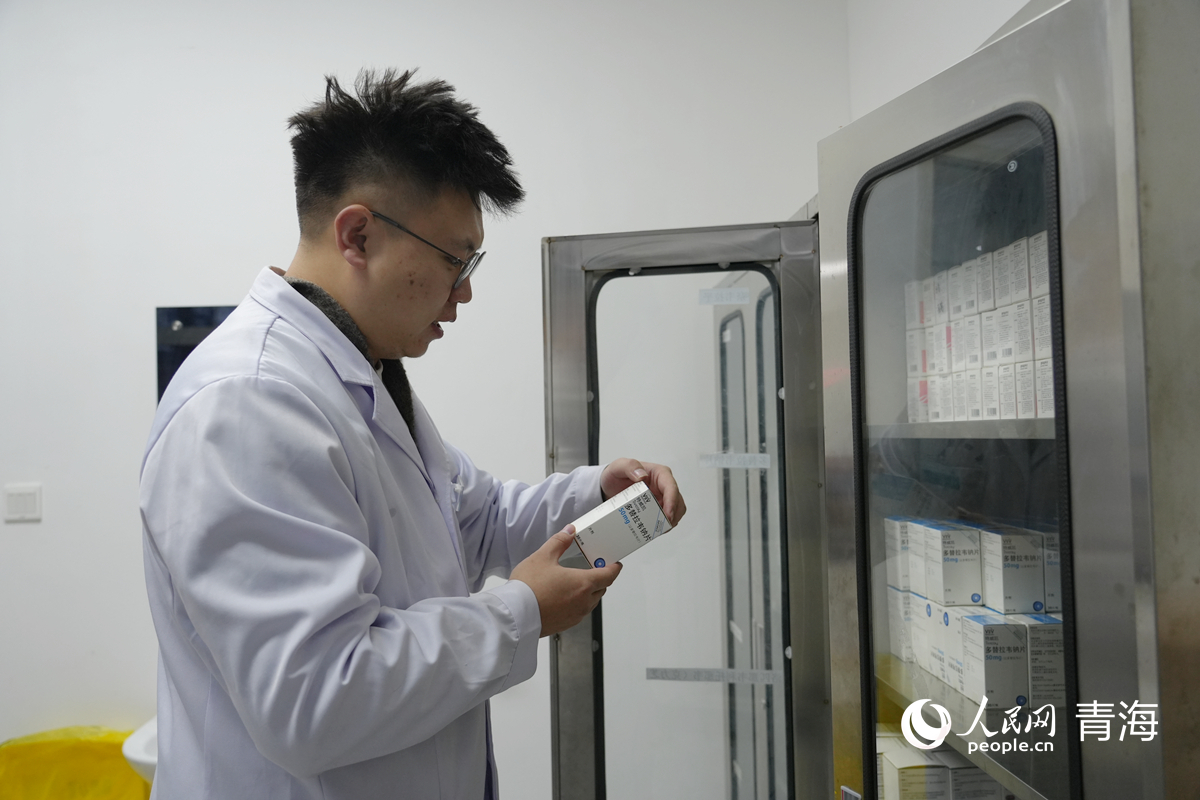 青海省四醫(yī)院中西醫(yī)結(jié)合科醫(yī)生正在核對藥物信息。人民網(wǎng)記者 楊啟紅攝