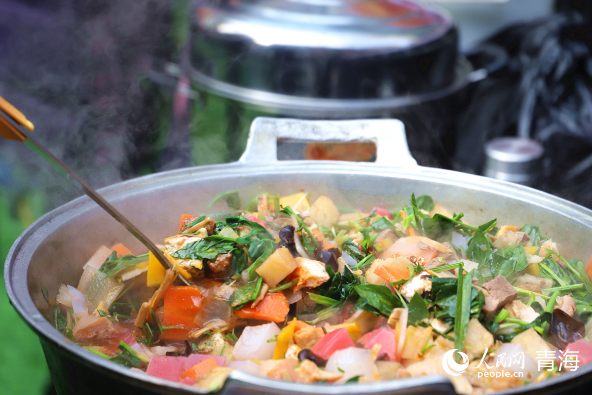 活動現(xiàn)場設(shè)置青海熬飯文化體驗區(qū)、美食品鑒展銷區(qū)、游戲互動區(qū),成為具有煙火氣的打卡點,也是青海暖食文化的“活課堂”。師傅們現(xiàn)場架鍋烹制,選用新鮮羊肉與多種食材一同慢燉,乳白色的濃湯香氣四溢,吸引了大量市民群眾駐足品嘗與拍攝。