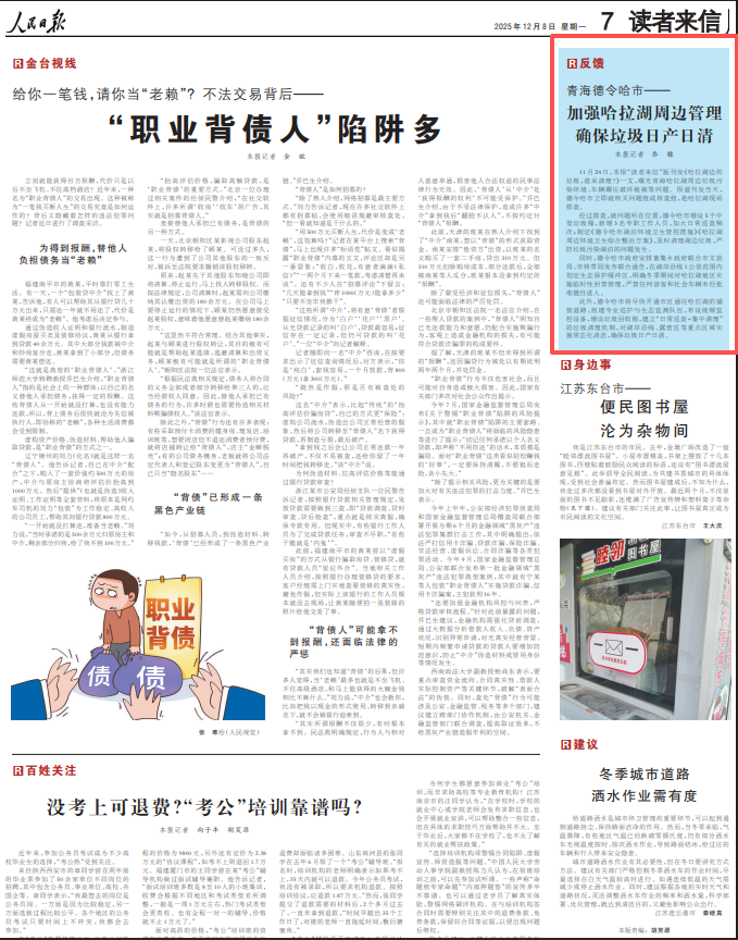 11月24日,本報“讀者來信”版刊發(fā)《哈拉湖邊的垃圾,誰來清理?》一文,曝光青海哈拉湖周邊垃圾污染環(huán)境、車輛碾壓破壞植被等問題。報道刊發(fā)當(dāng)天,德令哈市立即就相關(guān)問題組成核查組,赴哈拉湖現(xiàn)場排查。
